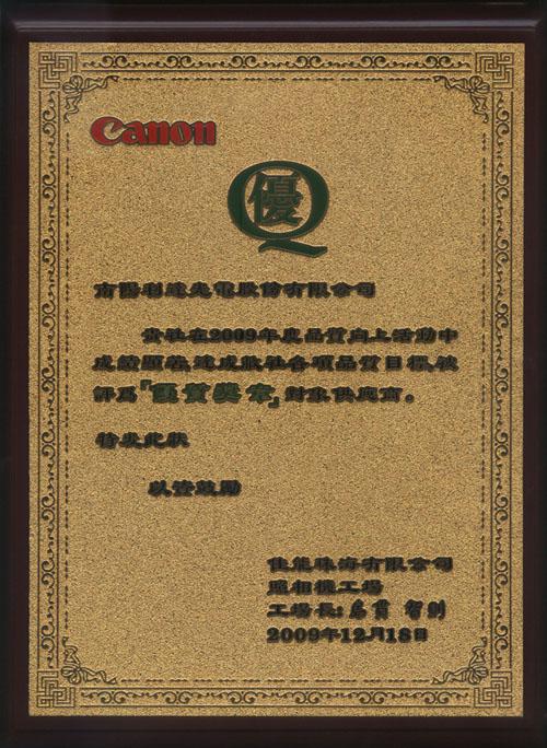 公司榮獲佳能供應商“優(yōu)質獎章”