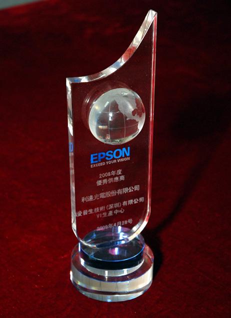 利達(dá)光電獲深圳愛(ài)普生2008年度最佳供應(yīng)商榮譽(yù)
